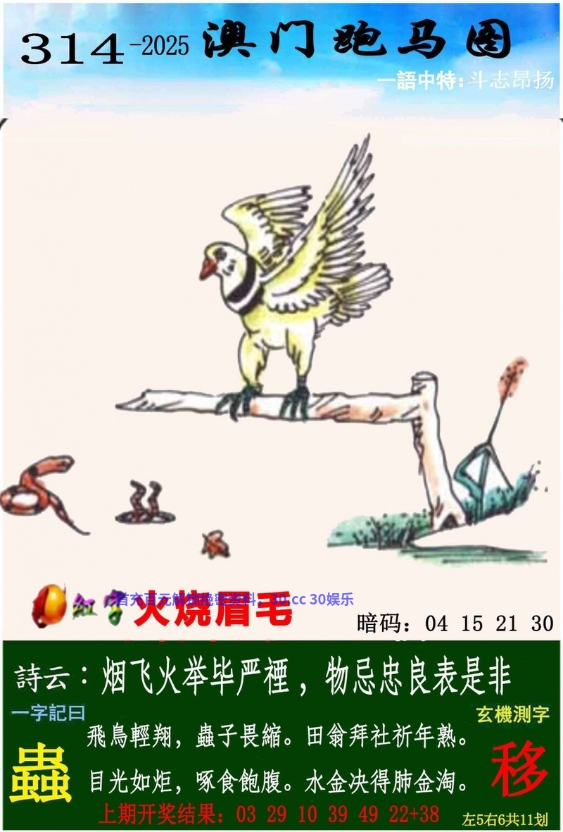 316期:开奖时间2025年11月12(星期三)晚9:30开(农历九月廿三 鸡冲兔)